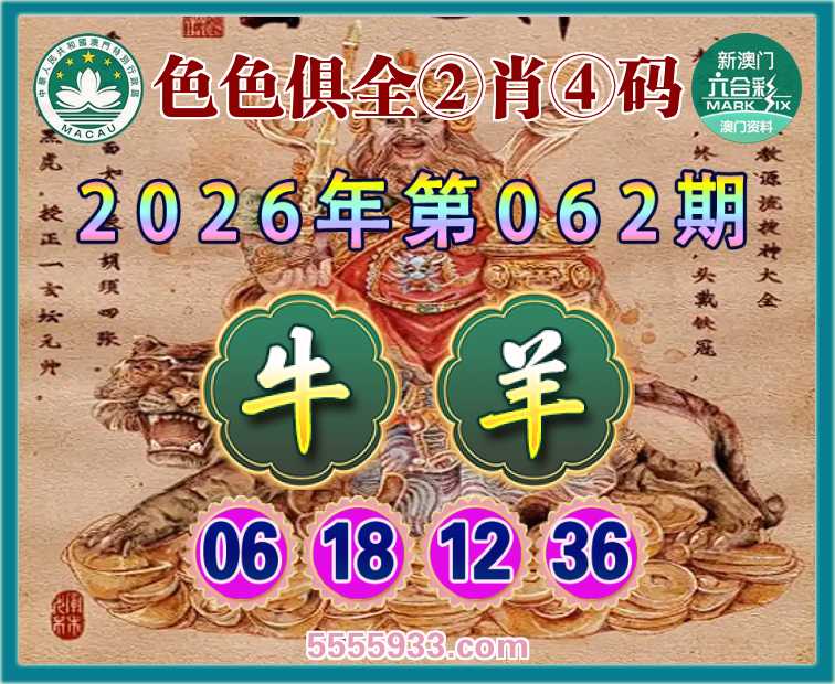 062期:〖色色俱全〗 ②肖④码【牛】【06.18.12.36】开:羊24