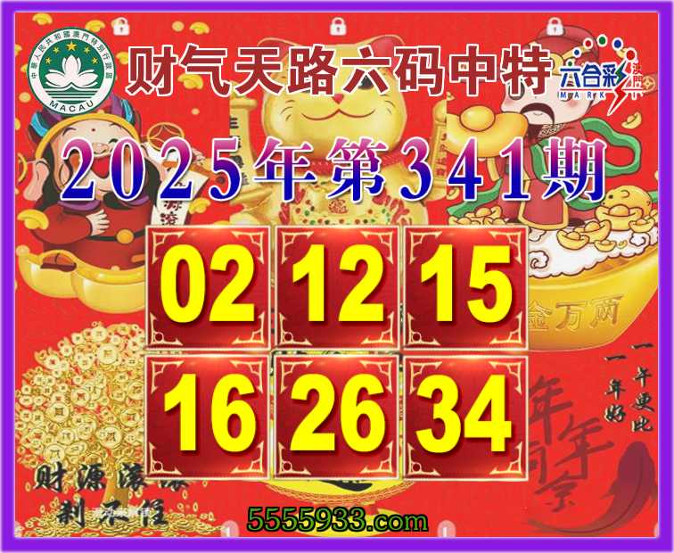 341期:〖财气天路〗 六码中特【02.12.15.16.26.34】开:00准