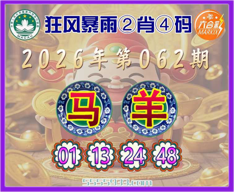 062期:《狂风暴雨》 ②肖④码【马羊】【01.13.24.48】开:羊24准